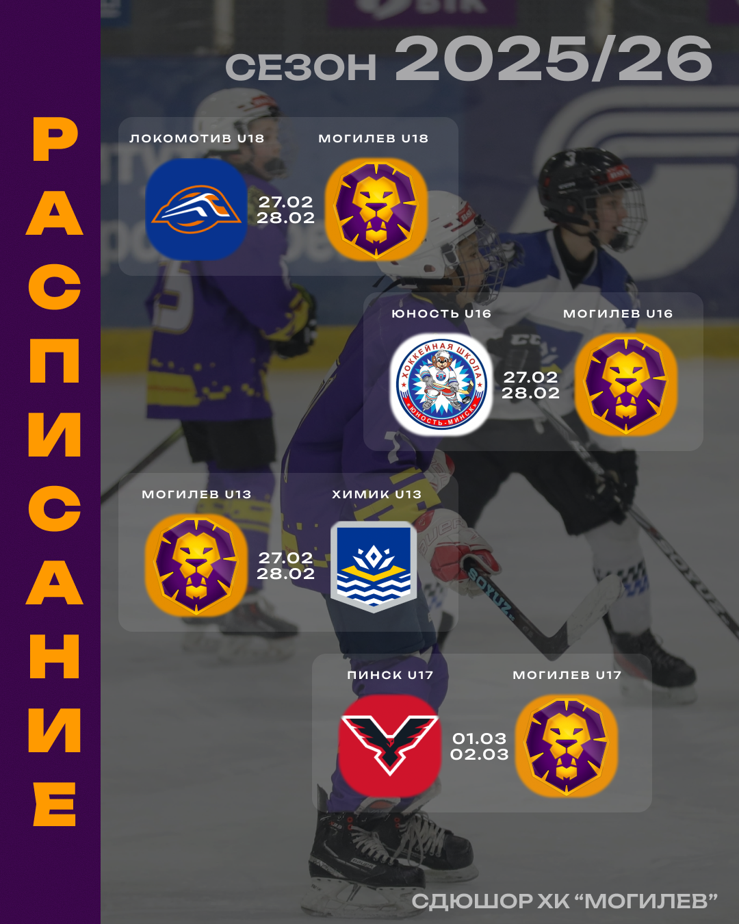 Друзья! Нас ждут невероятно насыщенные выходные. С 27 февраля по 2 марта сразу семь команд нашей спортивной школы вступят в борьбу! В активе юных «львов» — 14 игр: домашние серии и дальние выезды.