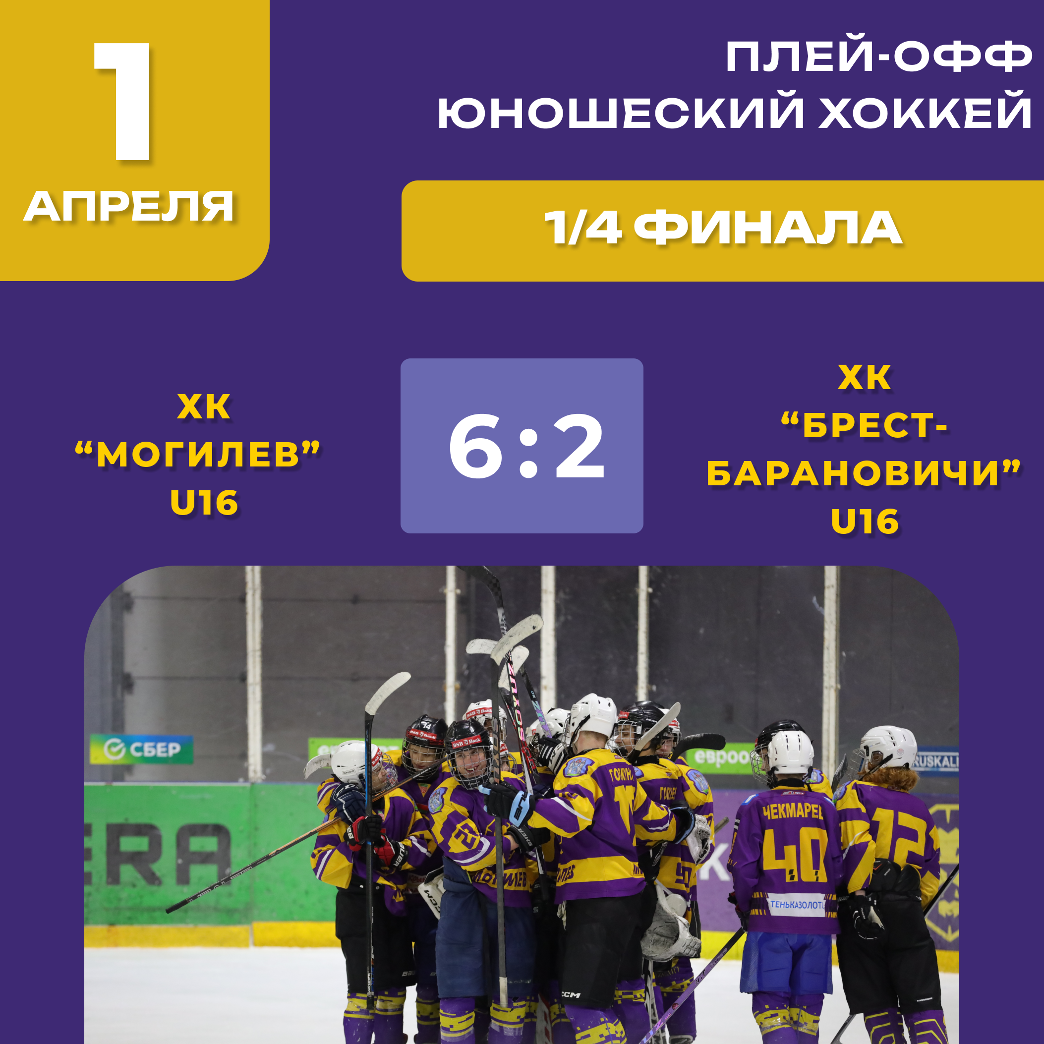 «Могилев» U16 уверенно забирает второй матч четвертьфинальной серии! Итоговый счет — 6:2.